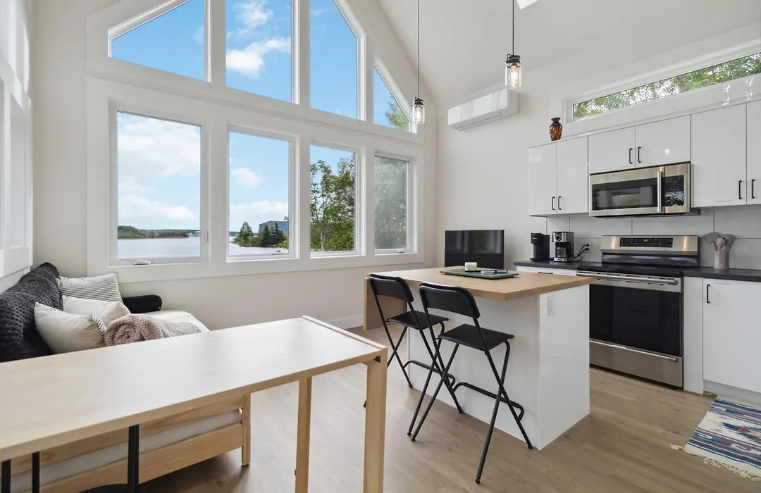 Die 1-Zimmer- Villa Harbour View Loft At Bells Cove Shelburne verfügt über ein privater Autoparkplatz und eine Terrasse mit Aussicht aufs Meer.